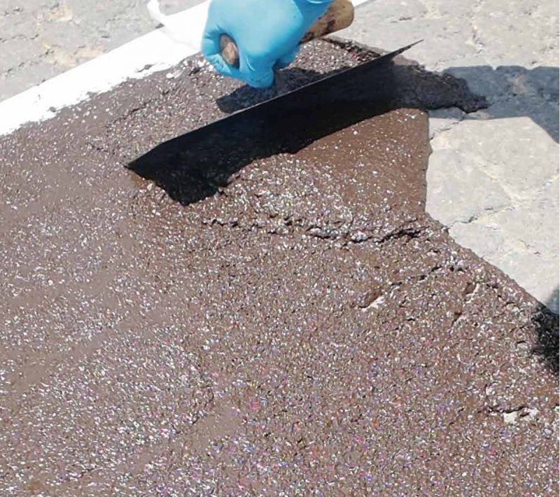 水性橡膠瀝青灌封膠使用注意事項為確保水性橡膠瀝青灌封膠的施工效果與材料性能穩定,需嚴格遵循以下操作要求,規范配比、攪拌及使用流程:一、材料配比要求水性橡膠瀝青灌封膠的液料與粉料標準配比為 100:20(即 100 公斤液料對應 20 公斤粉料)。若需根據實際施工時長(如夏季施工材料固化速度較快、冬季較慢)小范圍調整粉料用量,調整前必須先進行小批量試配測試,確認調整后材料的流動性、固化時間及粘結性能符合施工要求,避免因配比不當影響工程質量。二、攪拌操作規范粉料與液料混合時,可選擇以下兩種規范攪拌方式,確保材料均勻無顆粒:分批次攪拌法:先將一半粉料加入液料中,使用攪拌設備(如電動攪拌器)攪拌至無明顯粉料顆粒后,再加入剩余另一半粉料,繼續攪拌 3-5 分鐘,直至混合漿料質地均勻、無結塊,即可開展灌縫施工。一次性攪拌法:將全部粉料直接倒入液料中,采用強力攪拌器以高速(建議轉速 800-1200r/min)持續攪拌,期間可暫停攪拌,用工具刮取容器底部及邊緣材料,檢查是否存在未分散顆粒,確保整體混合均勻后,方可進行灌縫作業。三、材料使用時效提示粉料加入液料混合均勻后,需在材料初凝前盡快用完(具體時效需結合環境溫度調整,通常夏季建議 1 小時內用完,冬季可適當延長至 2 小時,以現場實際觀察材料無明顯變稠、固化為準)。若混合后存在剩余材料,必須在材料開始自固前及時處理(如根據情況補加少量液料重新攪拌調整,或直接廢棄),嚴禁使用已出現自固、結塊的材料進行灌縫,以免影響灌縫密封效果及工程耐久性。